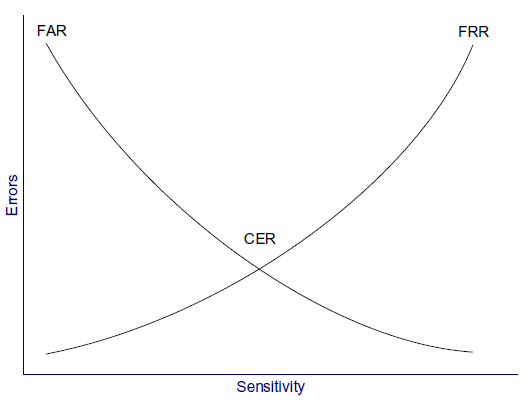 - The graph below depicts the FAR versus the FRR. The CER is the intersection of the two lines of the graph.